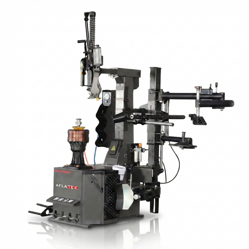 The Aflatek 806B+A350b 380V is a high-performance automatic tyre changer designed to meet the rigorous demands of modern professional garages and tyre service centres. This machine combines robust engineering with advanced pneumatic features to streamline the tyre-changing process. Its standout feature is the innovative automatic working head, which eliminates the need for a traditional crowbar, ensuring maximum protection for expensive alloy rims.
